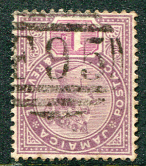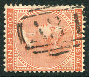 JAMAICA (24359): “F95” numeral postmark cancel, CA wmk