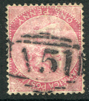 JAMAICA (24358): “A51” numeral postmark cancel, CA wmk
