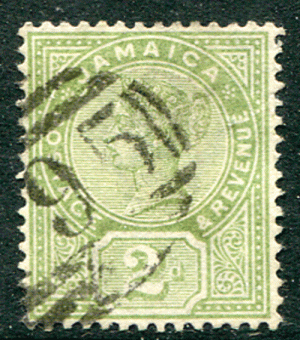 JAMAICA (24357): “A30” numeral postmark cancel, Pine wmk