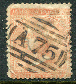 JAMAICA (23213): “A75” numeral cancel/QV stamp, SG.4