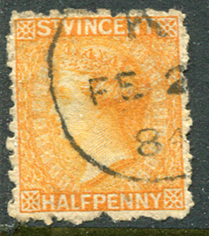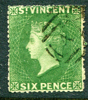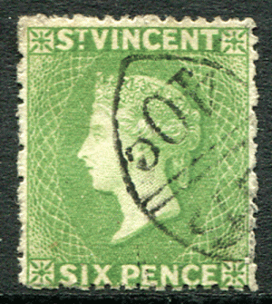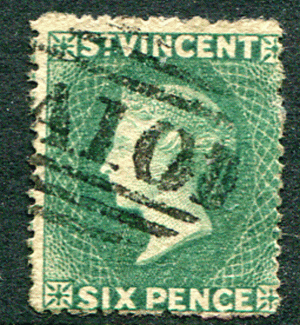 ST.VINCENT (23094): A10 cancel/QV 6d stamp, Cat.£200