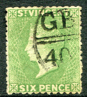 ST. VINCENT (23059): GB/40c cancel/QV 6d stamp, Cat.£29