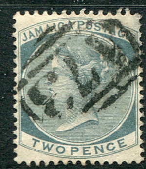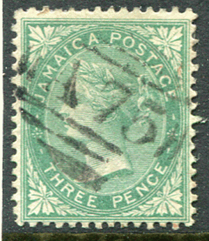 JAMAICA (23085): A33 numeral postmark/cancel/QV stamp