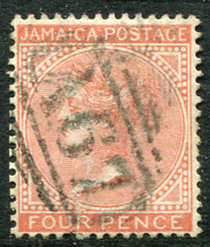 JAMAICA (23060): A64 numeral postmark/cancel/QV stamp