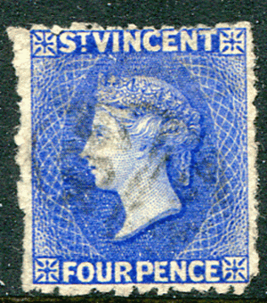 ST.VINCENT (23093): Vertical lines wmk/QV 4d stamp, Cat.£120