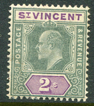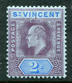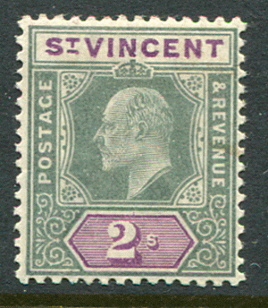 ST.VINCENT (23095): 1902 KE7 2/- stamp, Cat.25