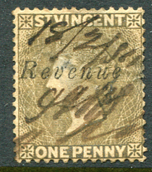 ST.VINCENT (23097): QV 1d drab “Revenue”stamp