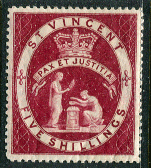 ST.VINCENT (23100): QV 5/- stamp SG.53, Cat.£30