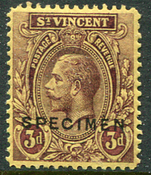 ST.VINCENT (23103): 1926 SPECIMEN KGV 3d stamp, SG.135