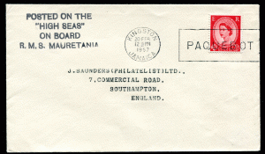 JAMAICA: (20618) RMS MAURETANIA paquebot cancel/cover