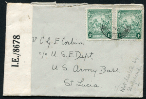 BARBADOS (21284) censored I.E./8678 cover to U.S. Army/St. Lucia
