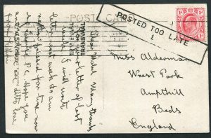TRANSVAAL: (14160) POSTED TOO LATE/1 cancel/Post Card