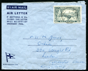 SIERRA LEONE: (20856) FREETOWN QUAY cancel/Elder Dempster Air Letter