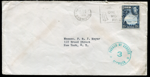 BERMUDA: (21473) green “3” censor cancel/American Express cover