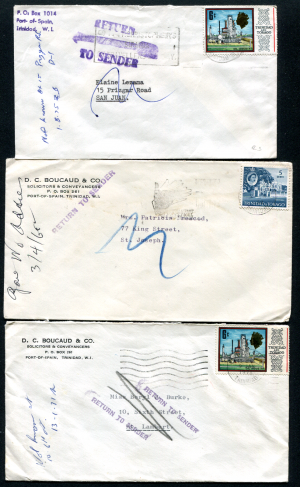 TRINIDAD: (20686) three types RETURN TO SENDER cancel/covers