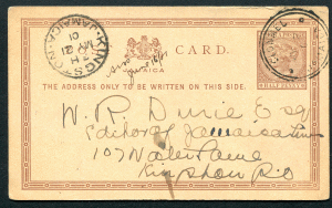 JAMAICA: (20617) CLONMEL sqc to Kingston cancel/card