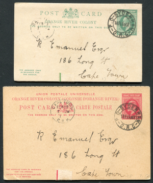 ORANGE RIVER COLONY (21763) SYDENHAM cancel/KE7 Reply Post Cards