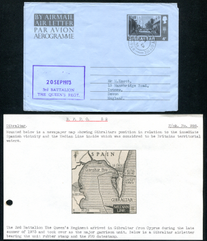 GIBRALTAR: (20384) QUEEN’S REGIMENT cancel/Air Letter