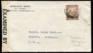 BARBADOS (21723) 1942 censor “8235” cover to Detroit