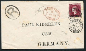 ST. VINCENT: (17222) 1895 FIVE PENCE on QV 6d cancel/ QV cover