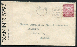 BARBADOS (21285) censored 5292 cover to Bradford, Yorkshire