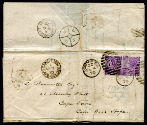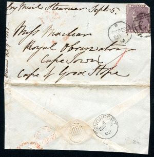 GREAT BRITAIN: (20966) 1866 6d Officer’s letter Portsmouth to Cape of Good Hope