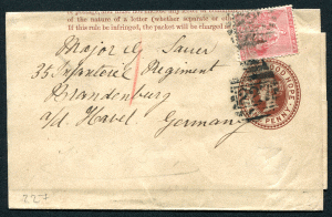 BARBADOS: (19479) Duke of Wellington’s Regiment/GB QV 4d wrapper
