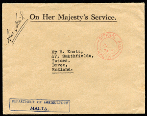 MALTA (21364) Agriculture cachet/cancel/cover