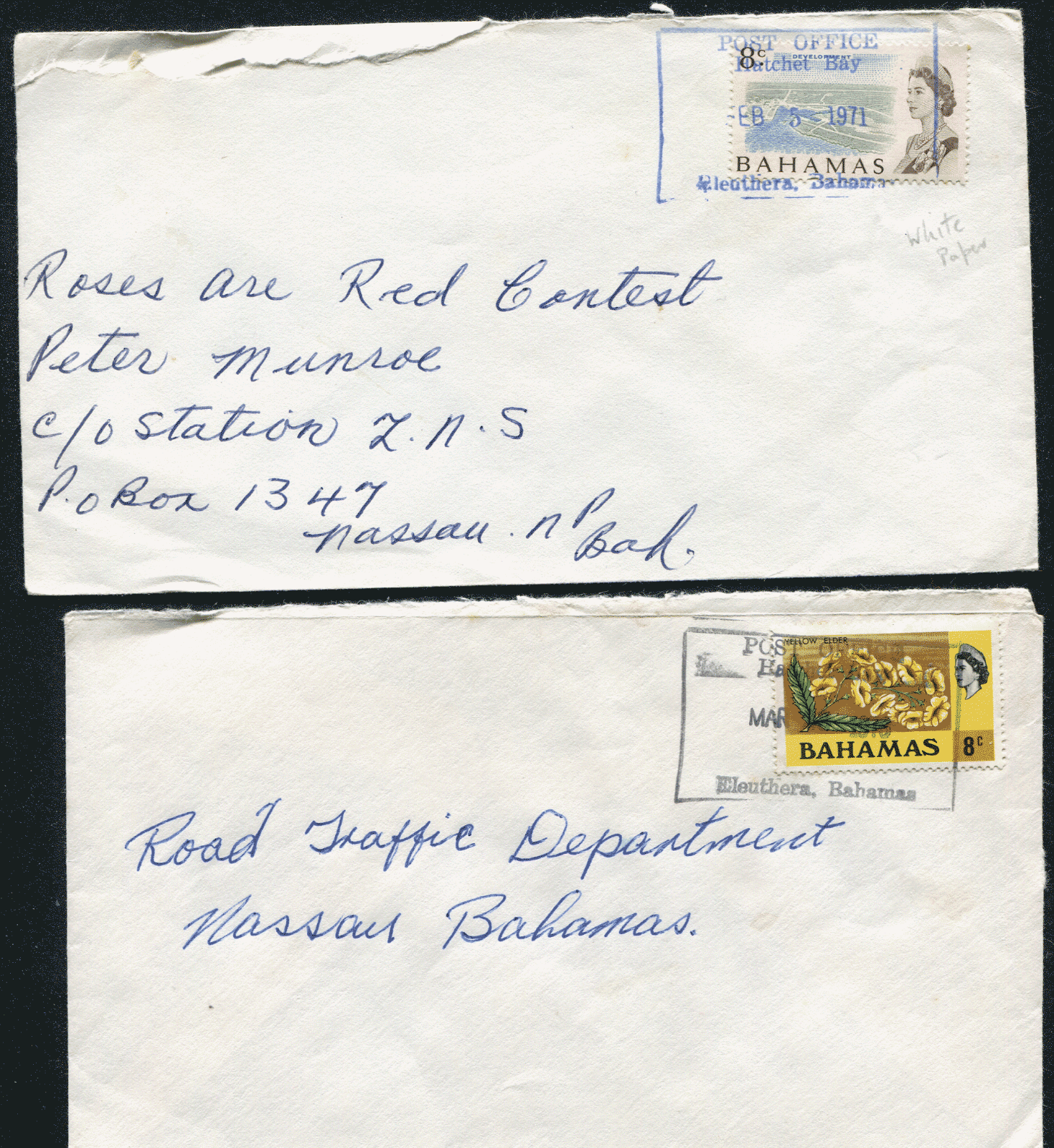 two covers pmk’d FEB 5 1971 and MAR 8 1976, opening fault on first
