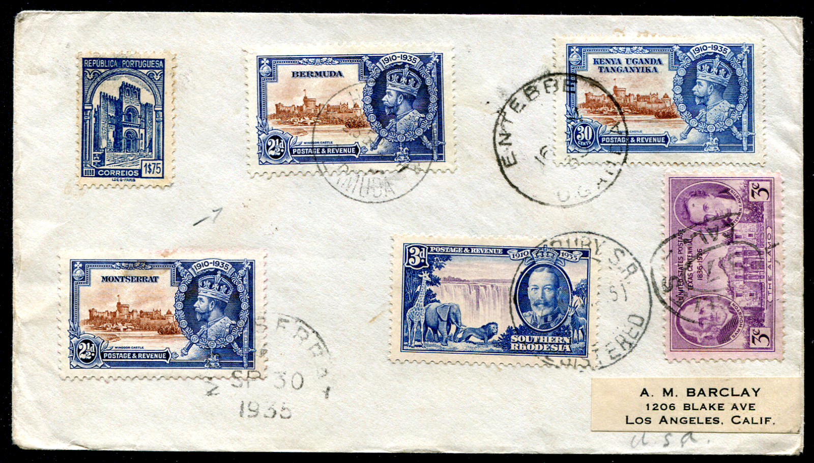 BERMUDA: (19408) SJ/Portugal/Montserrat/USA/Kenya/Rhodesia round world cover