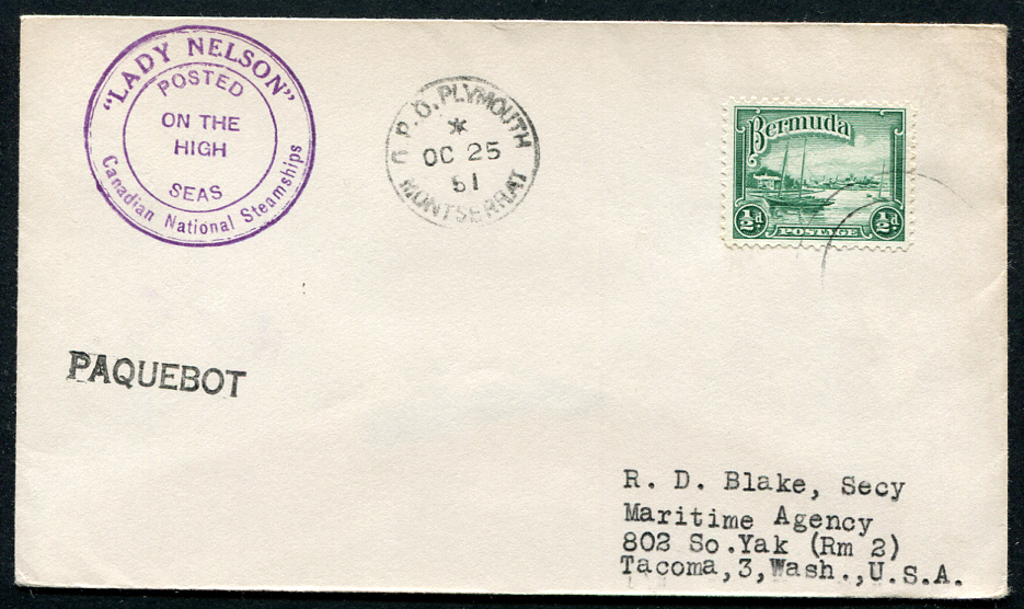 BERMUDA (24898): Nelson paquebot/Canada/Montserrat cancel/cover