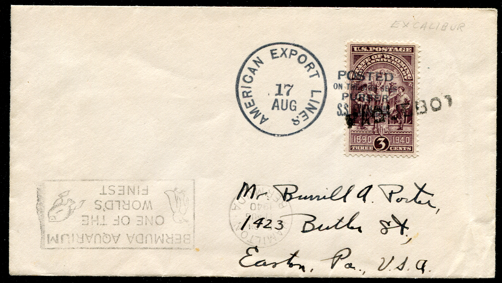BERMUDA (25297): S.S. EXCALIBUR paquebot cover/postmark
