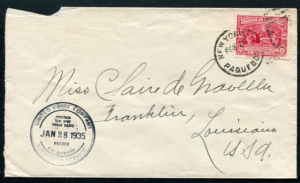 COSTA RICA (24700): UFCo S.S. Quirigua paquebot cancel/cover