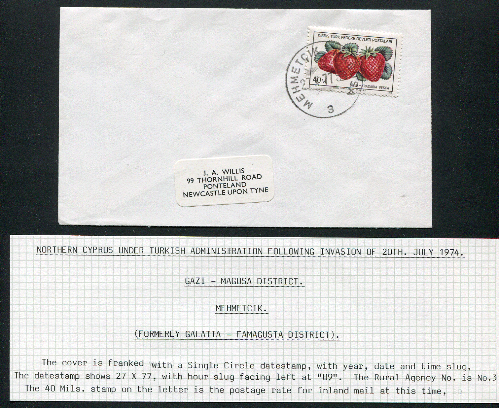 CYPRUS: (16573) Turkish MEHMETICK postmark/cancel/cover
