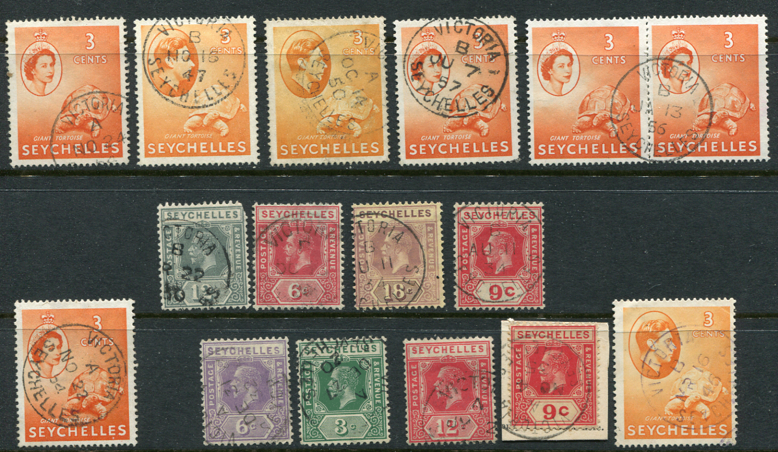 SEYCHELLES: (21060) KGV to QE2 postmarks/cancels