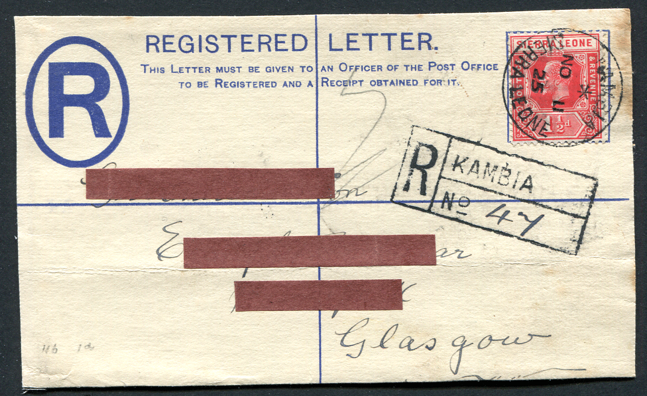 SIERRA LEONE: (19840) reg. KAMBIA cancel/cover FRONT