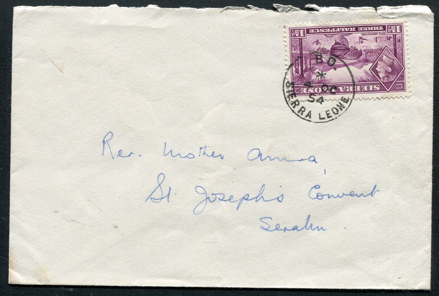 SIERRA LEONE (21621) B O. postmark/cancel/Serabu cover
