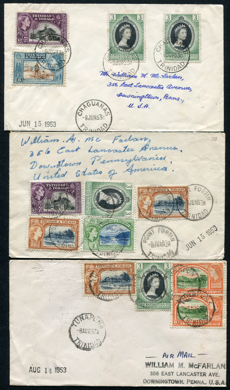 TRINIDAD: (17449) TUNAPUNA etc cancels/covers