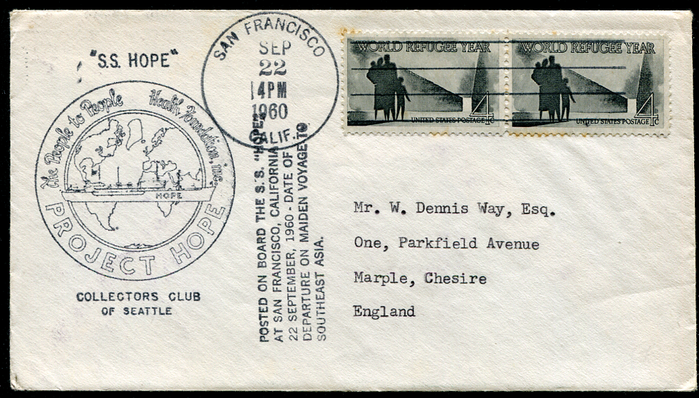 USA (24904): 1960 S.S. Hope paquebot cancel/cover/contents