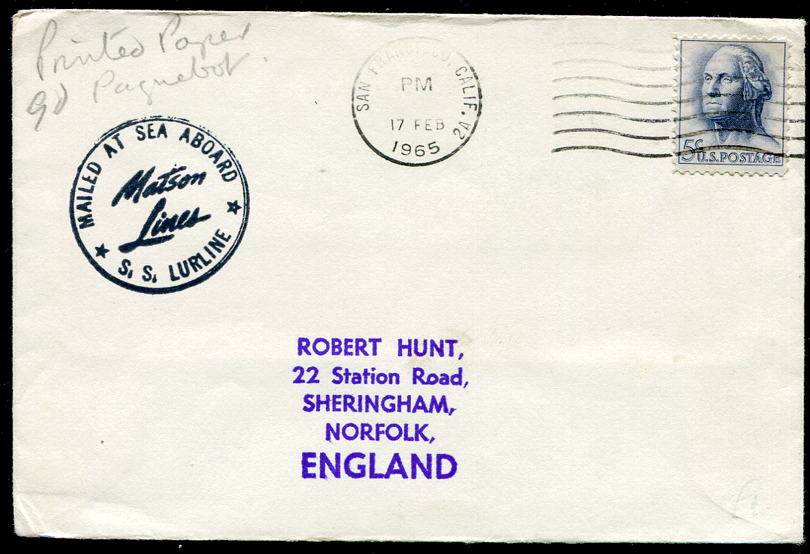 USA (25356): 1965 S.S. LURLINE paquebot/cancel/cover